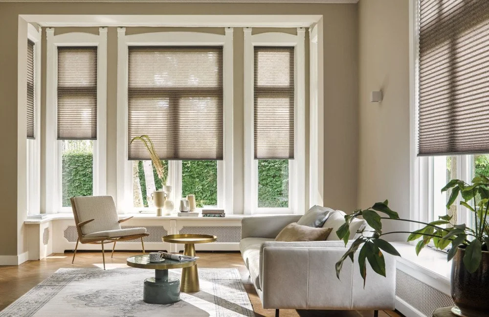 Wabenplissees und Plissees lassen sich leicht an Fenstertüren anbringen - auch in einer Top-Down-Bottom-Up-Version für eine optimale Lichtsteuerung. Tipp: Wähle seitlich geführte Seile, um ein „Klopfen“ durch den Wind zu verhindern. Also Invidia!